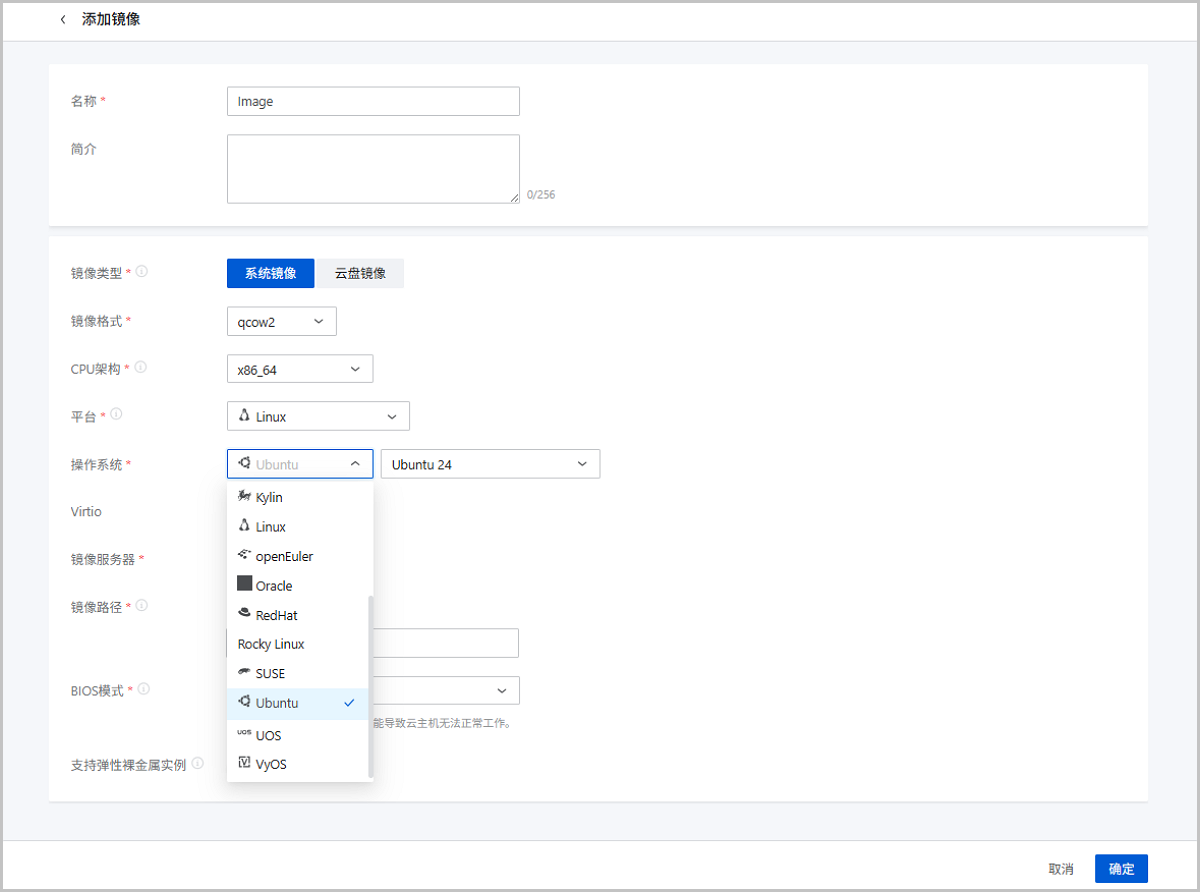 添加镜像时,可准确选择GuestOS类型和版本。
