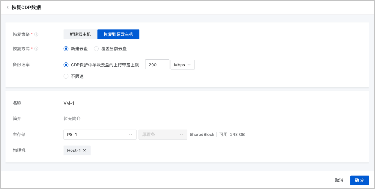 新增支持“恢复CDP数据”长时任务,准确监控恢复进度,并以可视化的方式进行展现。同时该任务支持取消,且恢复过程中产生的中间数据不会保留。