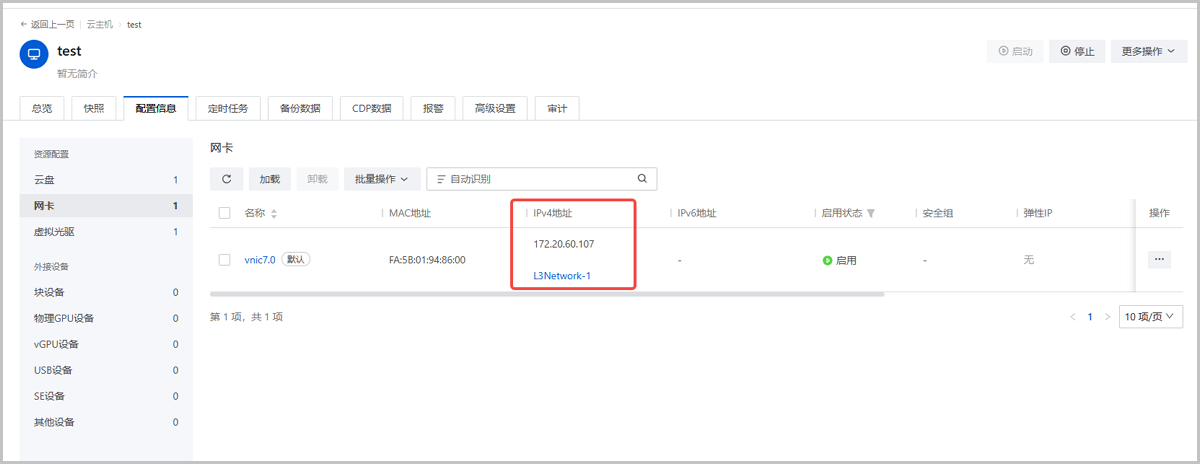 支持实时读取、展示云主机内部配置的IP地址