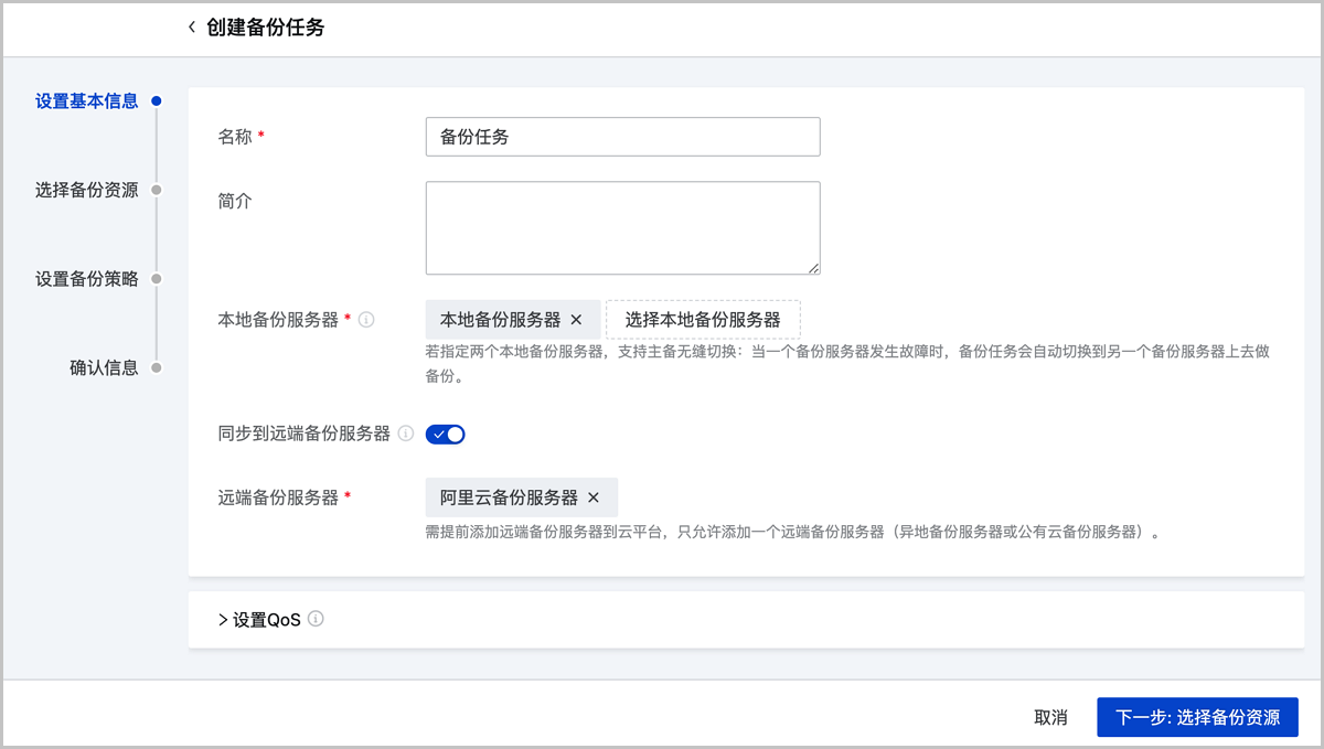 创建备份任务分为以下四步: