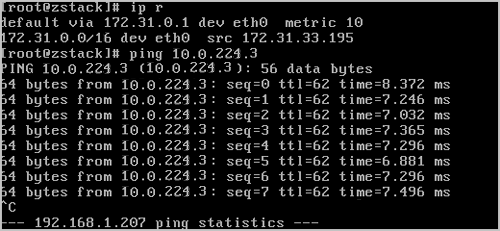 ping通。 至此,ZStack Cloud私有云云主机和阿里云ECS云主机即可使用阿里云高速通道的方式实现互通。