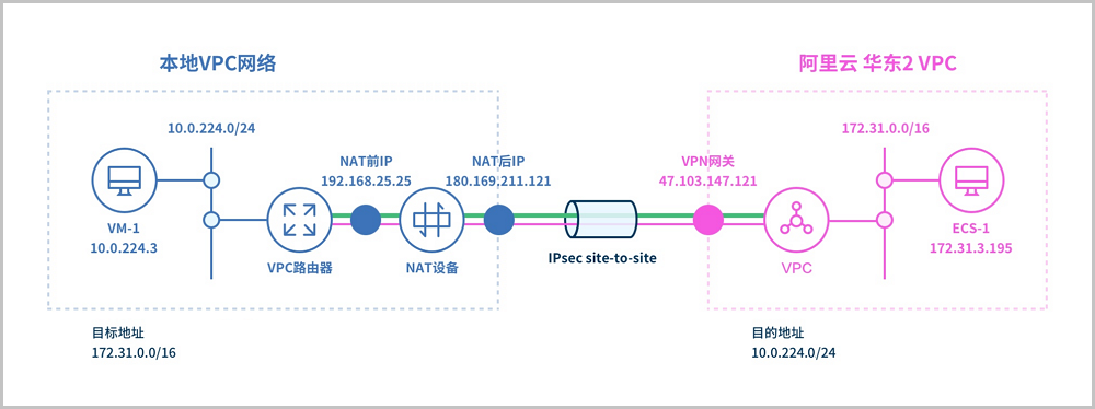 ZStack Cloud支持IPsec VPN方式实现本地VPC网络与阿里云VPC网络的互通。