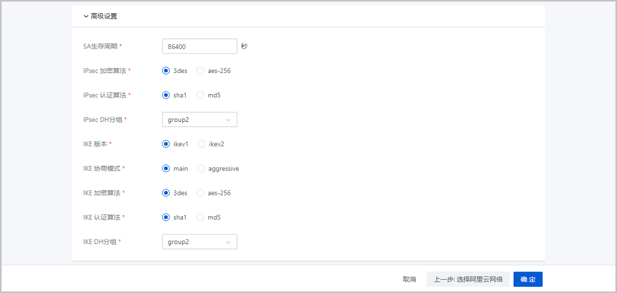 | 备注 | 新增网络,私有云云主机可使用此网络访问阿里云ECS |