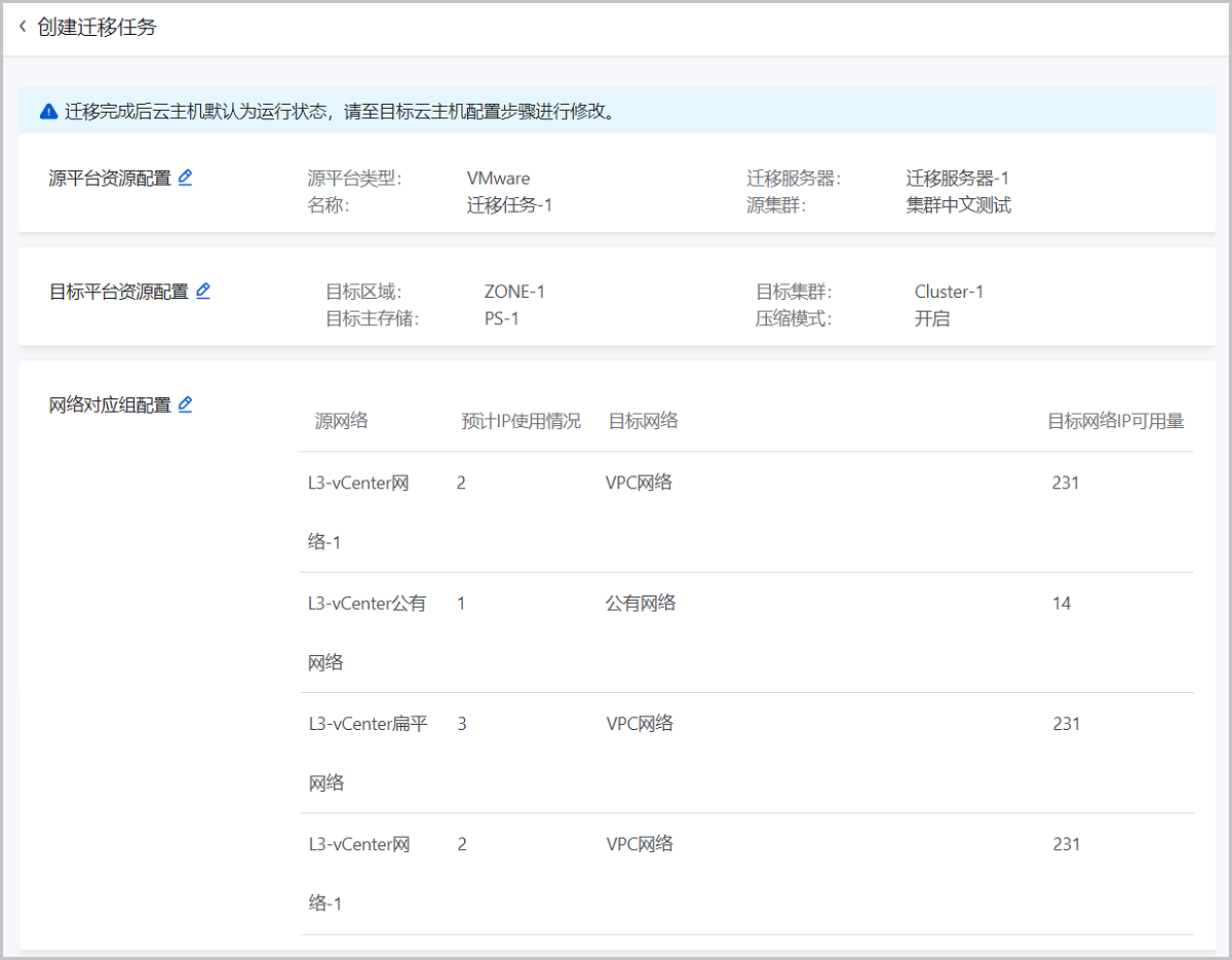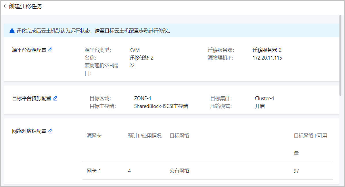 查看将要创建的迁移任务,支持跳转修改。