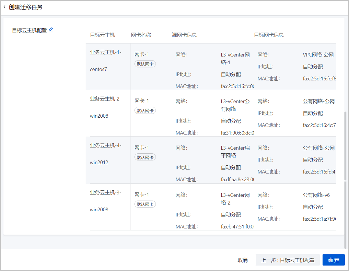说明: 若用户未配置,迁移后目标网卡MAC地址与源网卡MAC地址保持一致。