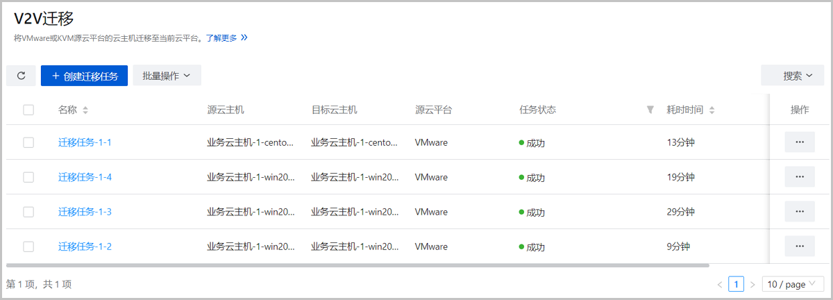2. 创建V2V迁移任务,将已接管的4台vCenter云主机迁移至当前云平台。