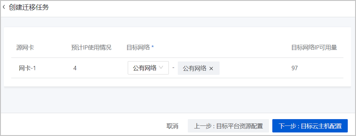 说明: 云主机迁移至当前云平台,要求至少配置一张网卡。