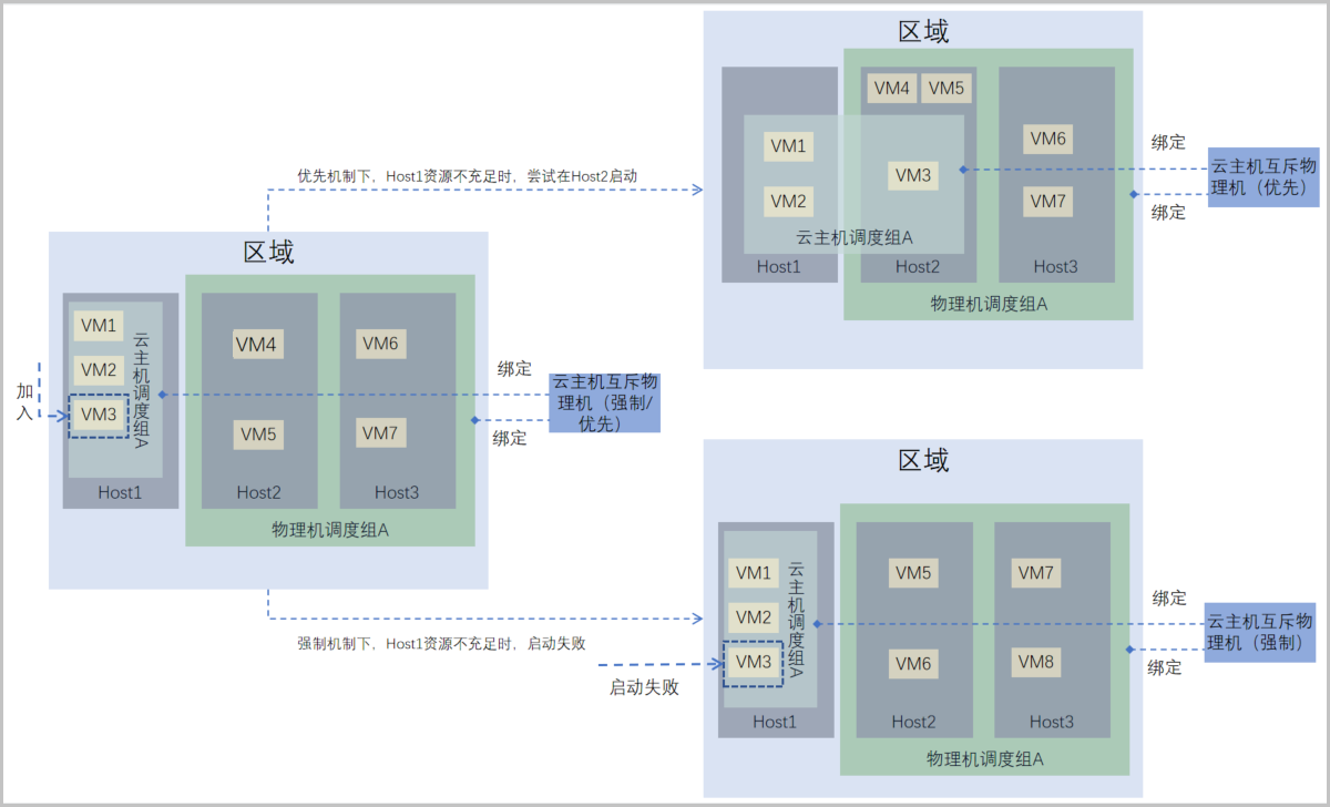 • 强制机制下,云主机VM3遵循与物理机调度组A内的物理机强制互斥原则:
