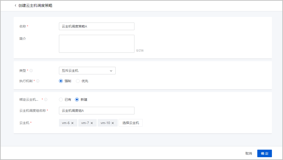 | 修改执行机制 | 修改云主机调度策略的执行机制,支持修改成强制或优先两种机制。 |